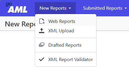 A SAR report is created as a web report on the GoAML website. Press New Report in the menu and thereafter chose Web Reports.