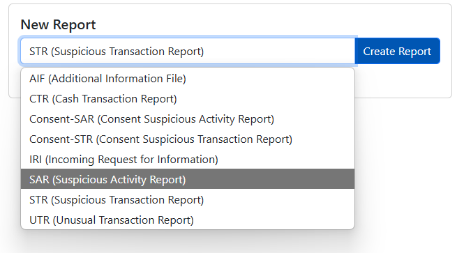 Thereafter you must choose Suspicious Activity Report (SAR) and follow the steps below.